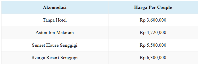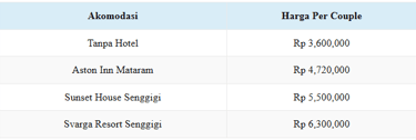 Paket Honeymoon Lombok 3 hari 2 Malam (B)