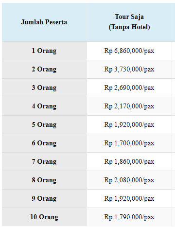 Paket wisata ini bersifat PRIVATE dan tidak akan digabung dengan orang lain