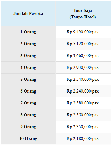 Paket wisata ini bersifat PRIVATE dan tidak akan digabung dengan orang lain