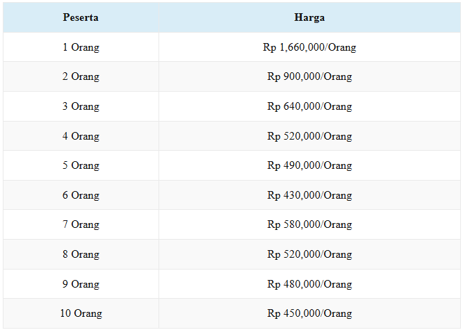 Peserta lebih dari 10 orang atau group silahkan hubungi kami