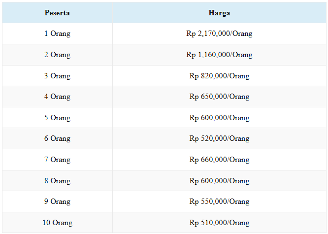 Peserta lebih dari 10 orang atau group silahkan hubungi kami