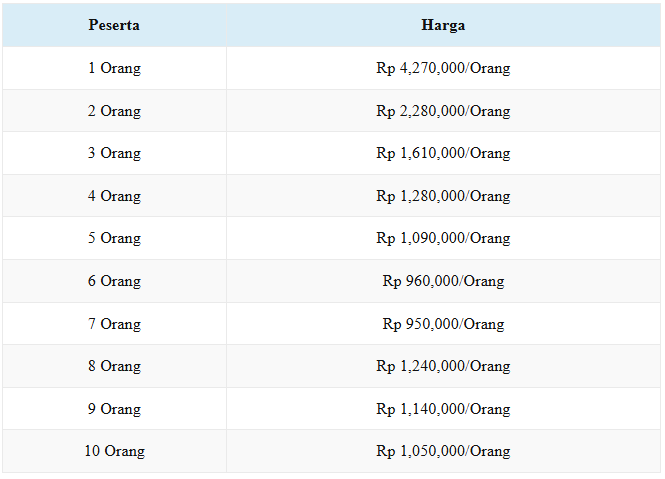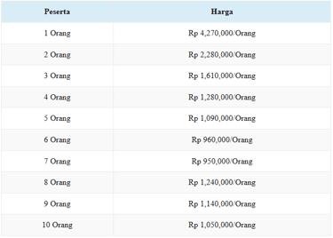 Peserta lebih dari 10 orang atau group silahkan hubungi kami